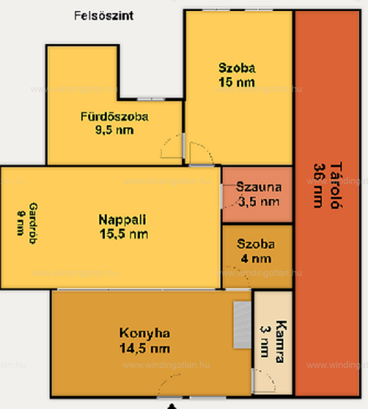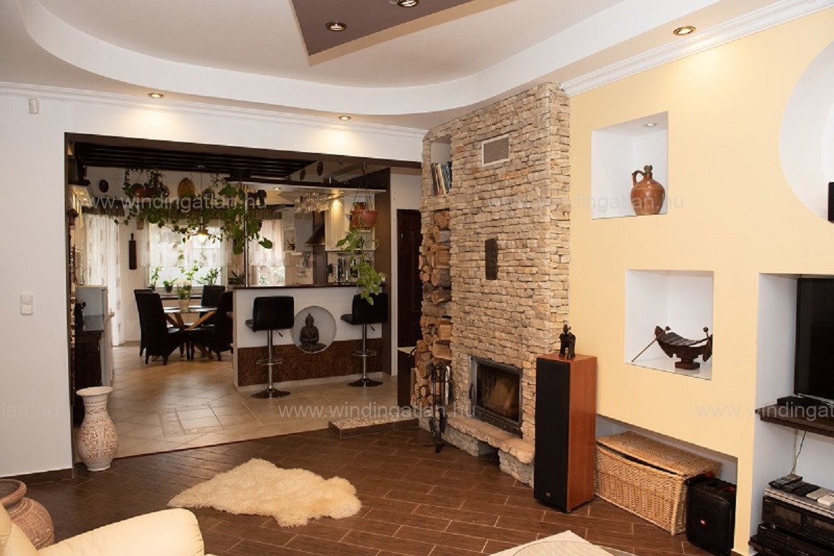 Elrendezése: amerikai konyhás nappali, WC, hidromasszázs zuhanyzó, illetve teljes légelszívással, kandallóval és klímával rendelkező helyiségekből áll.