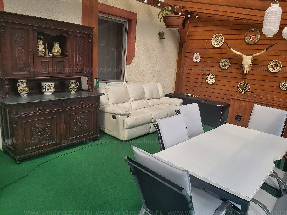 Itt található még egy 28 nm-es udvari tároló, több funkciós kerti grillező, 20 nm-es medence, /fűtő kollektor/ mely a nyári melegben kellemes hűsölést biztosít.