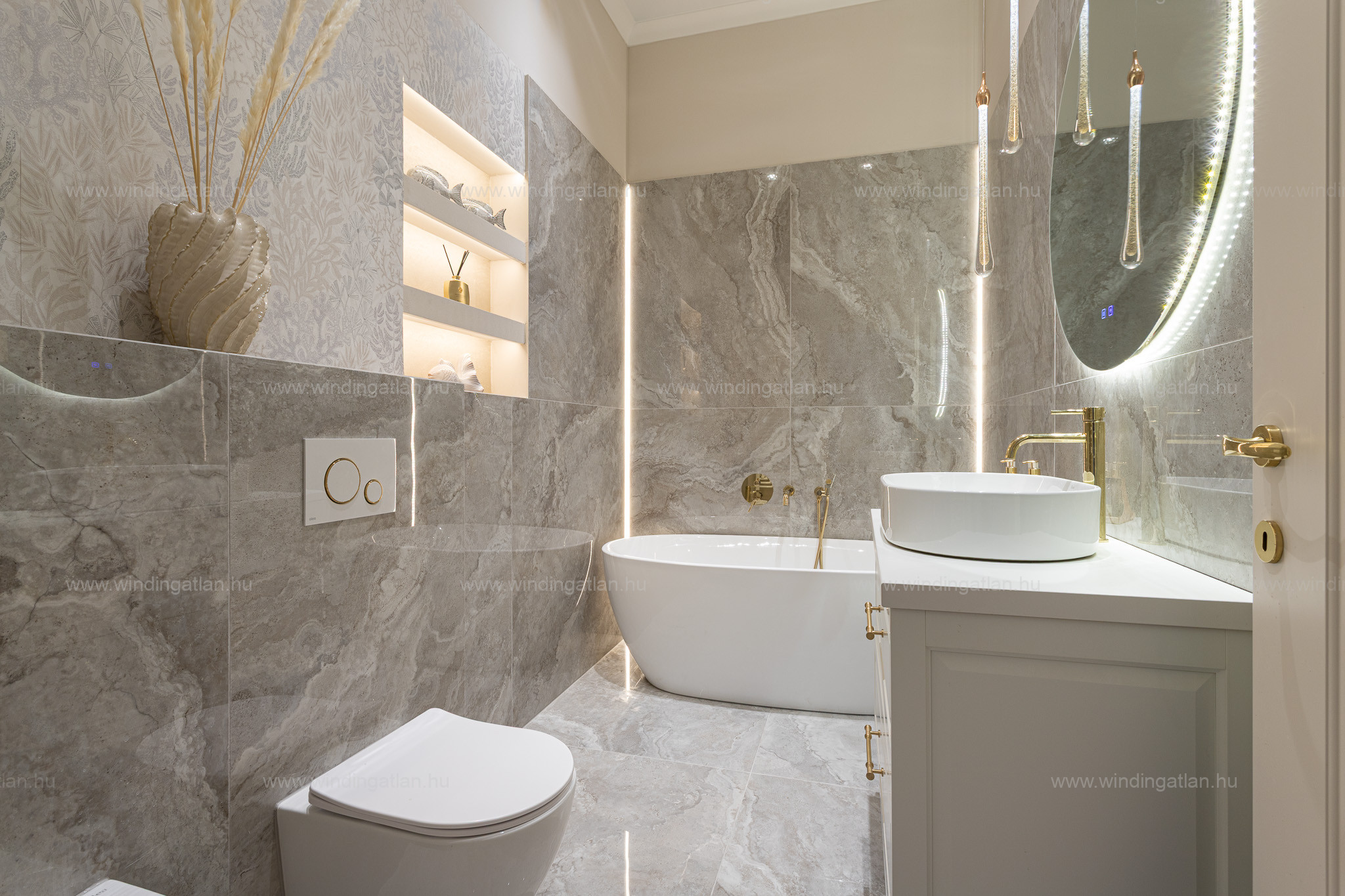 * Designer csillárok, beépített szekrények, minőségi szaniterek, prémium burkolatok