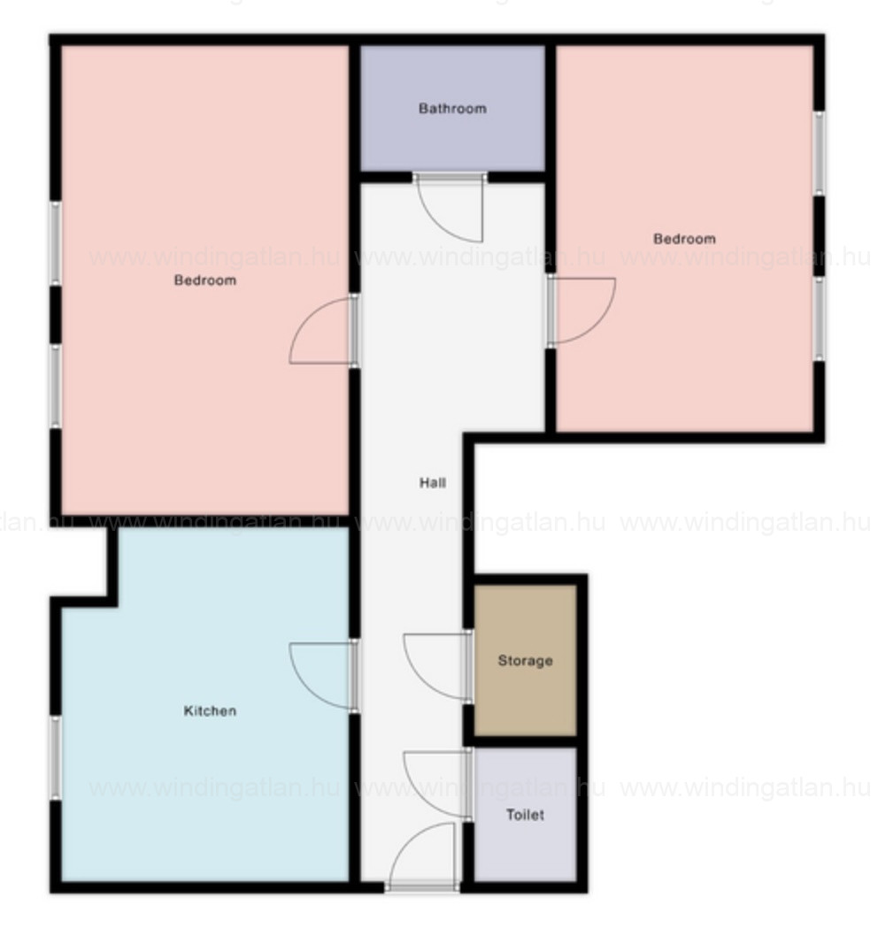 Mindkét hálószobában két ablak, világos, jól szellőztethető terek