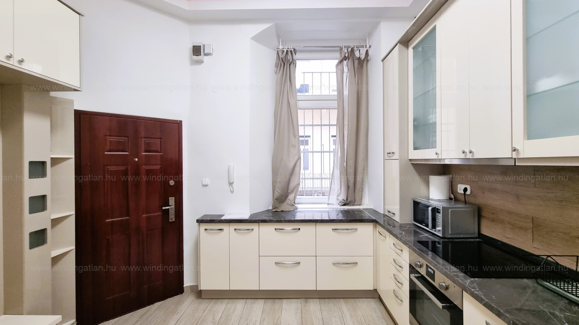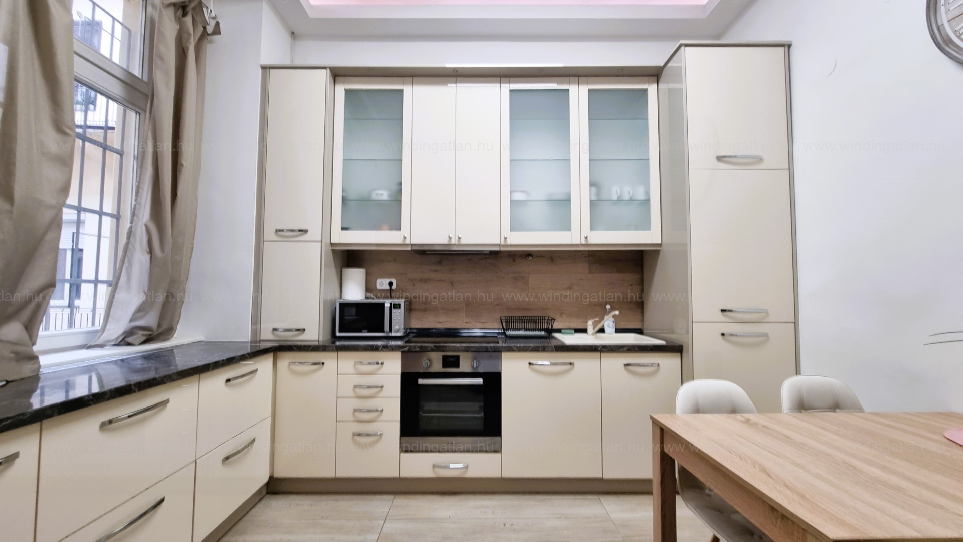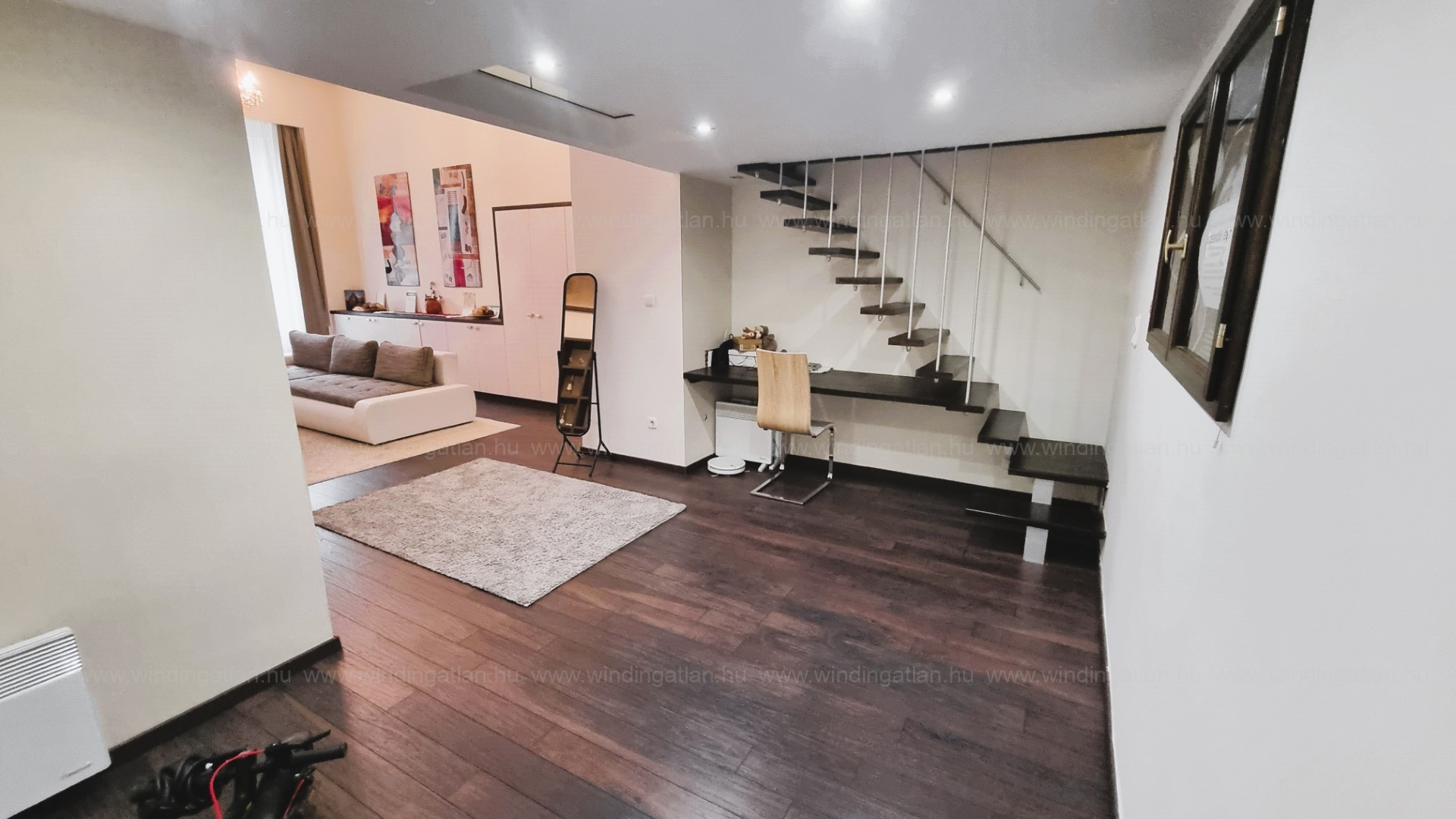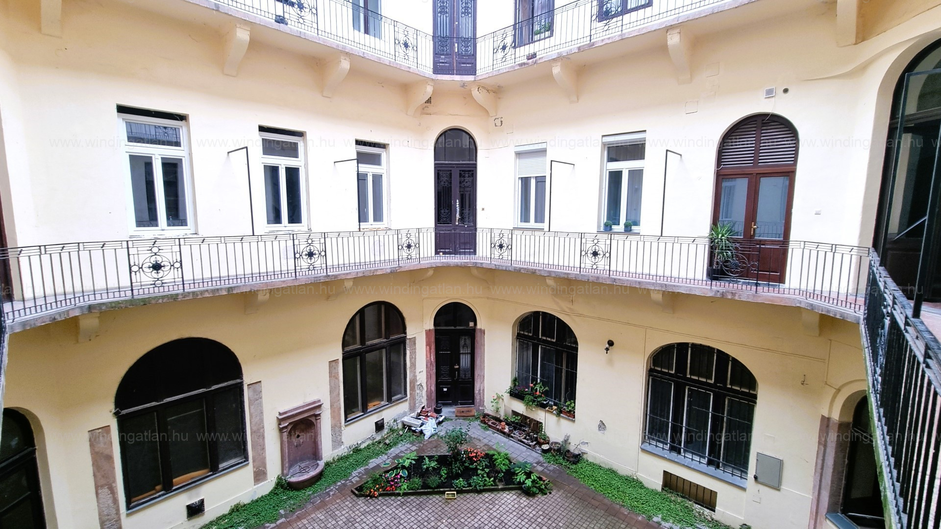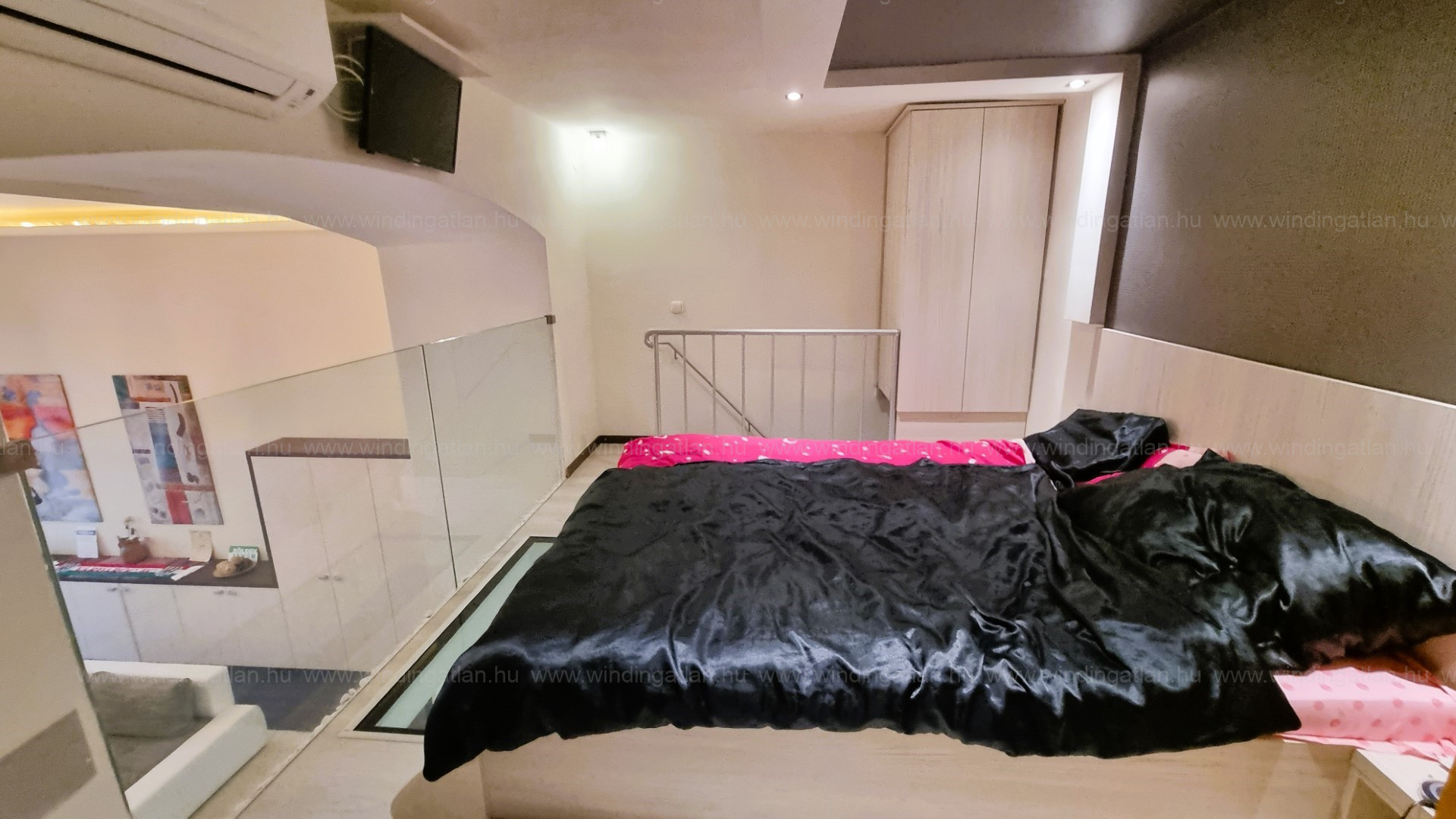 elhelyezkedő, 58 nm-es, 1 szoba (27 nm) + hallos (12 nm) + állógalériás (12 nm), klímás, gyönyörűen felújított, 4 m belmagasságú téglalakást.
