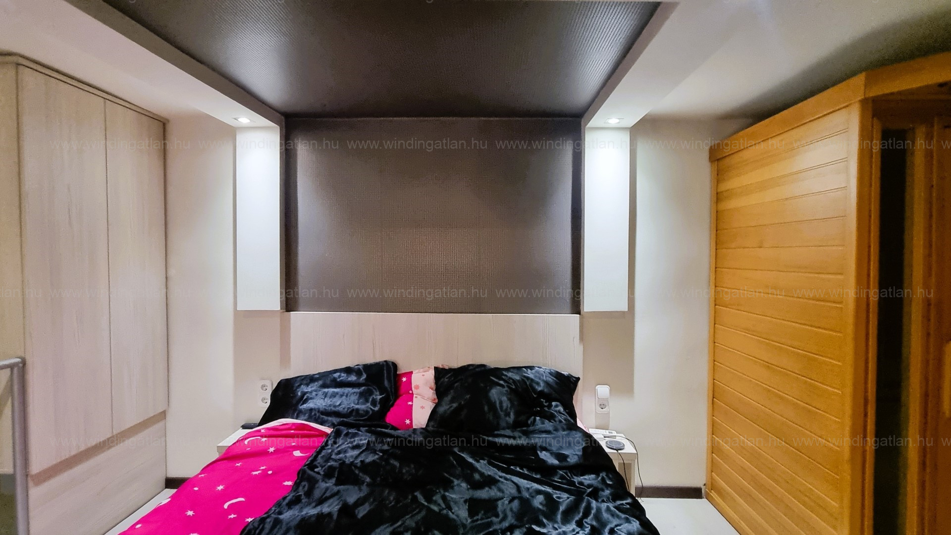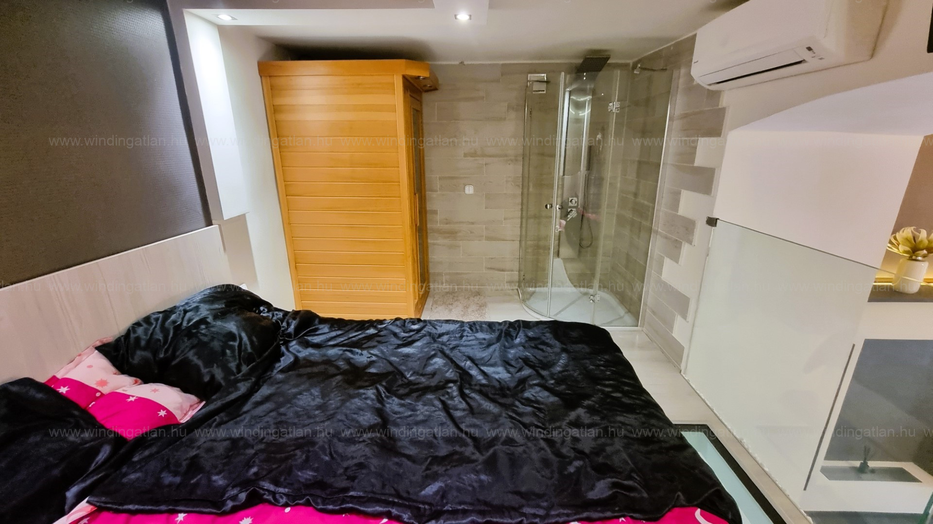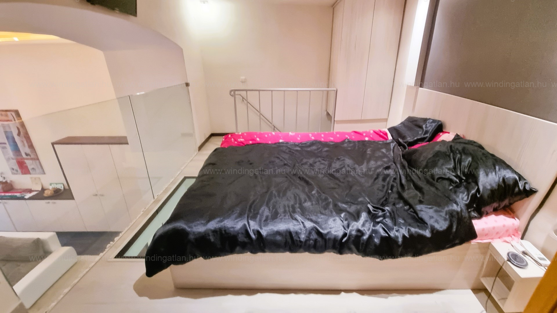 A 12,5 nm-es álló galérián alakították ki a hálószobát és itt található még egy zuhanyzó és egy szauna is.
