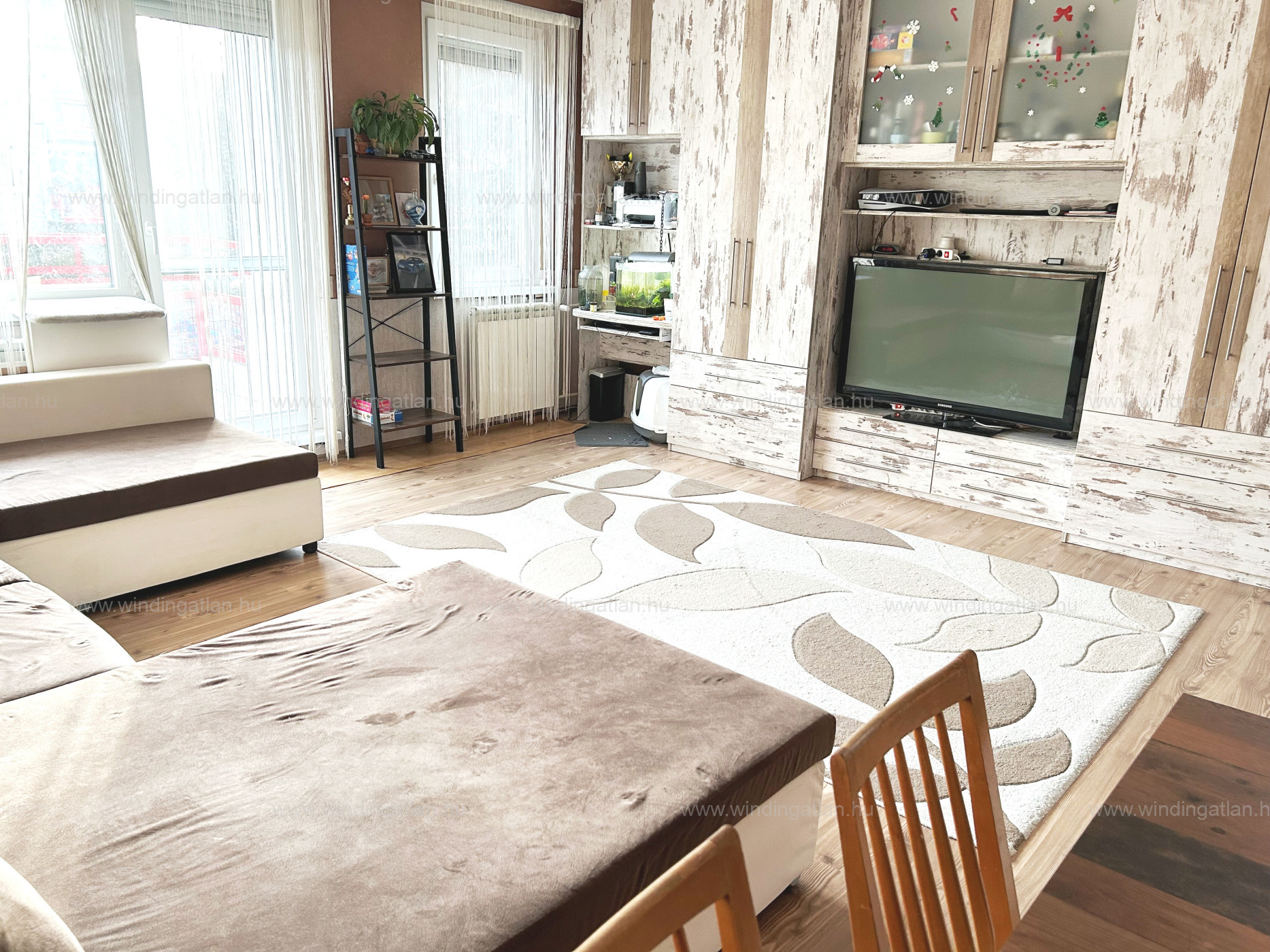 Az ablakok parkos övezetre néznek. A szobák laminált padlóval, a többi helyiség pedig járolappal burkolt. Az új minőségi radiátorok egyedi mérővel rendelkeznek.