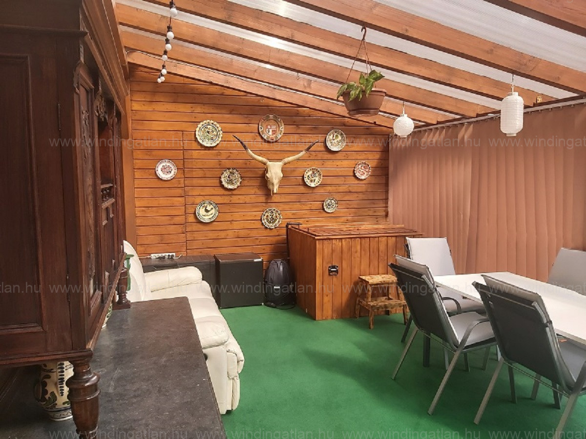Itt található még egy 28 nm-es udvari tároló, több funkciós kerti grillező, 20 nm-es medence, /fűtő kollektor/ mely a nyári melegben kellemes hűsölést biztosít.