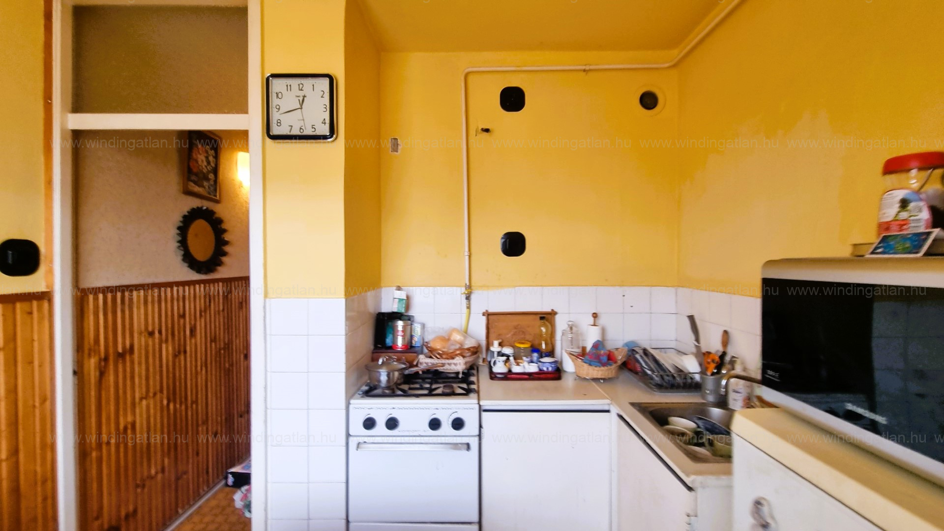 Az ingatlanban egy 18 nm-es nappali, 9 nm-es hálószoba, 7 nm-es, ablakos konyha, fürdőszoba, külön wc, és közlekedő található.