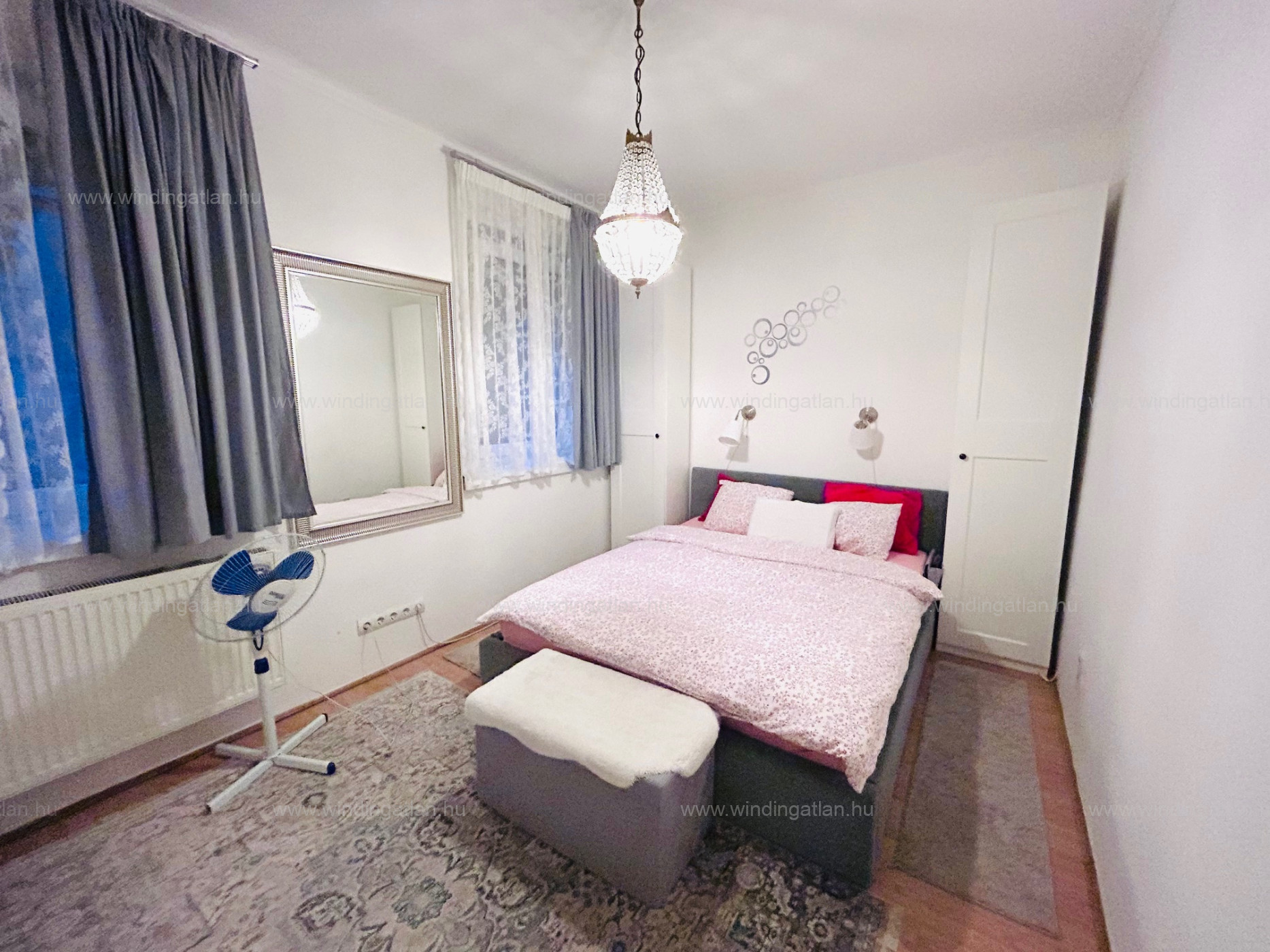 Mindkét hálószobában két ablak, világos, jól szellőztethető terek