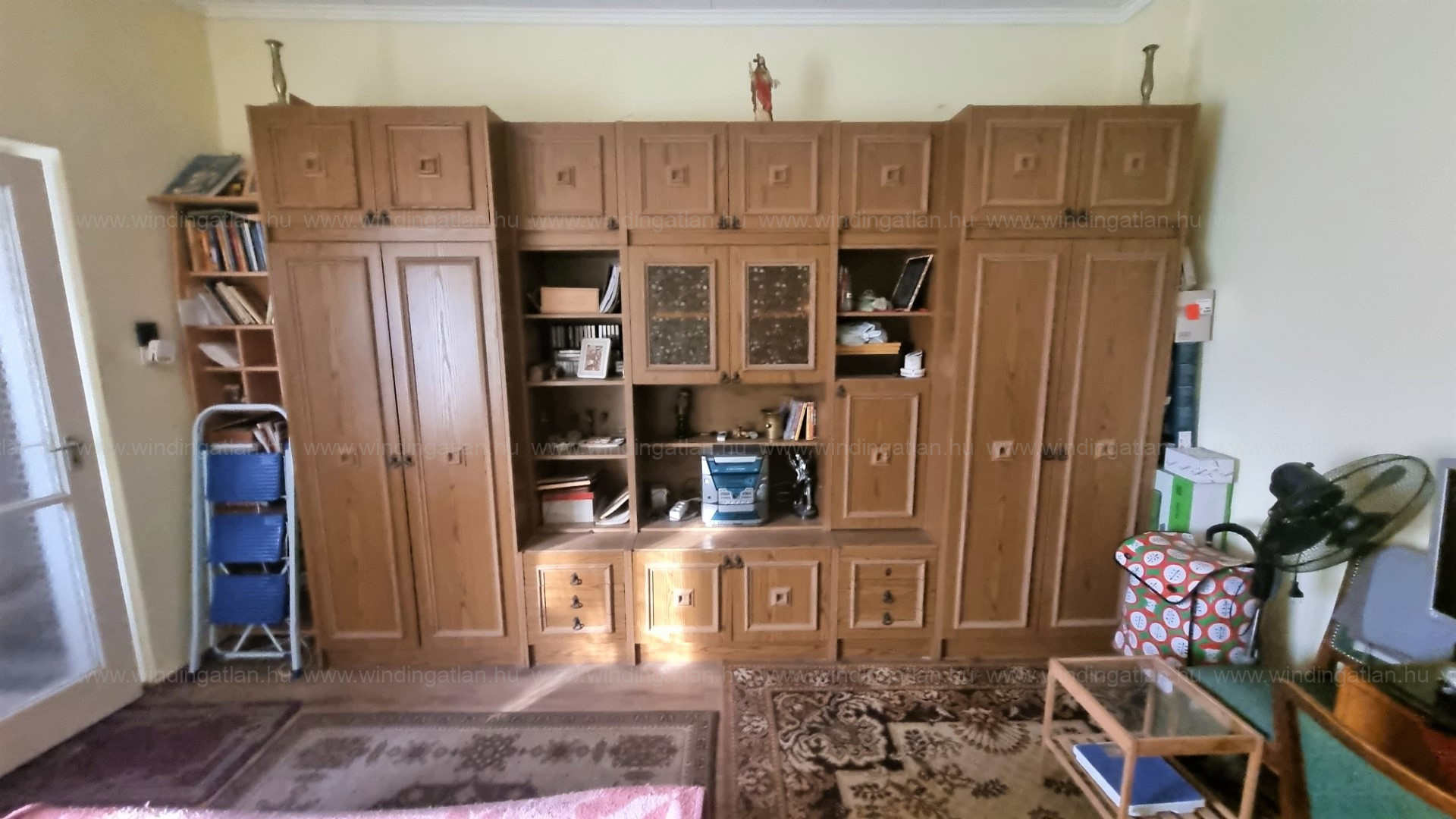A külön nyíló szobák (19 nm, 16,5 nm, 8,5 nm) parkettával, a többi helyiség járólappal burkolt.