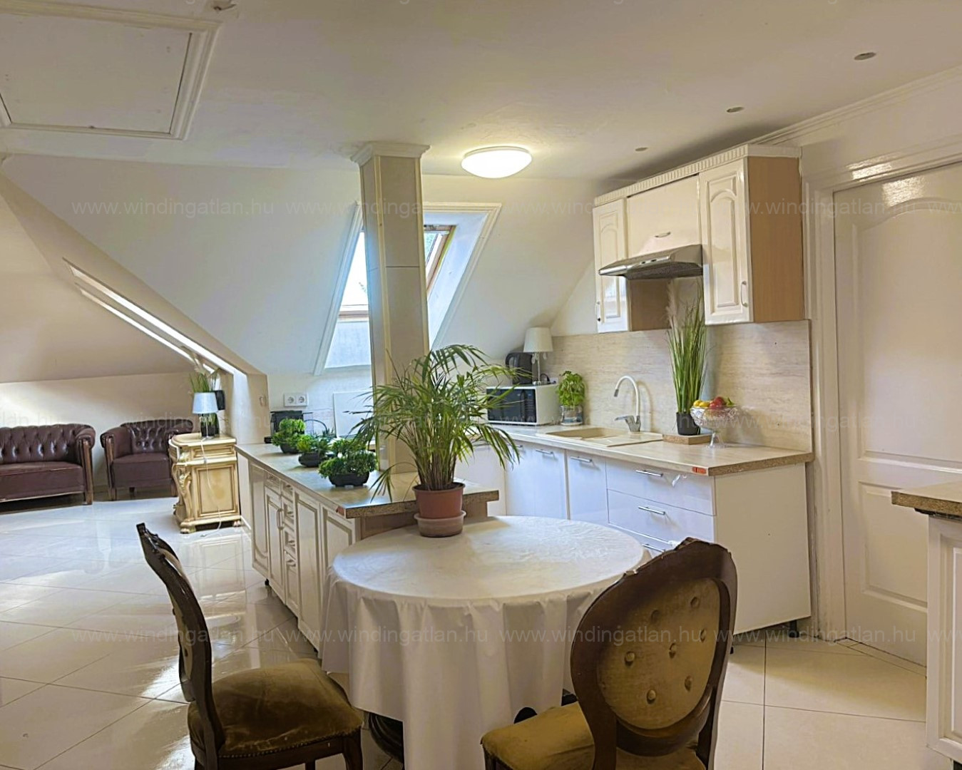 Az emeletre jutva az amerikai konyhás nappaliba érkezünk. Tovább haladva jutunk el a 2 hálószobához és a fenti fürdőszobához.
