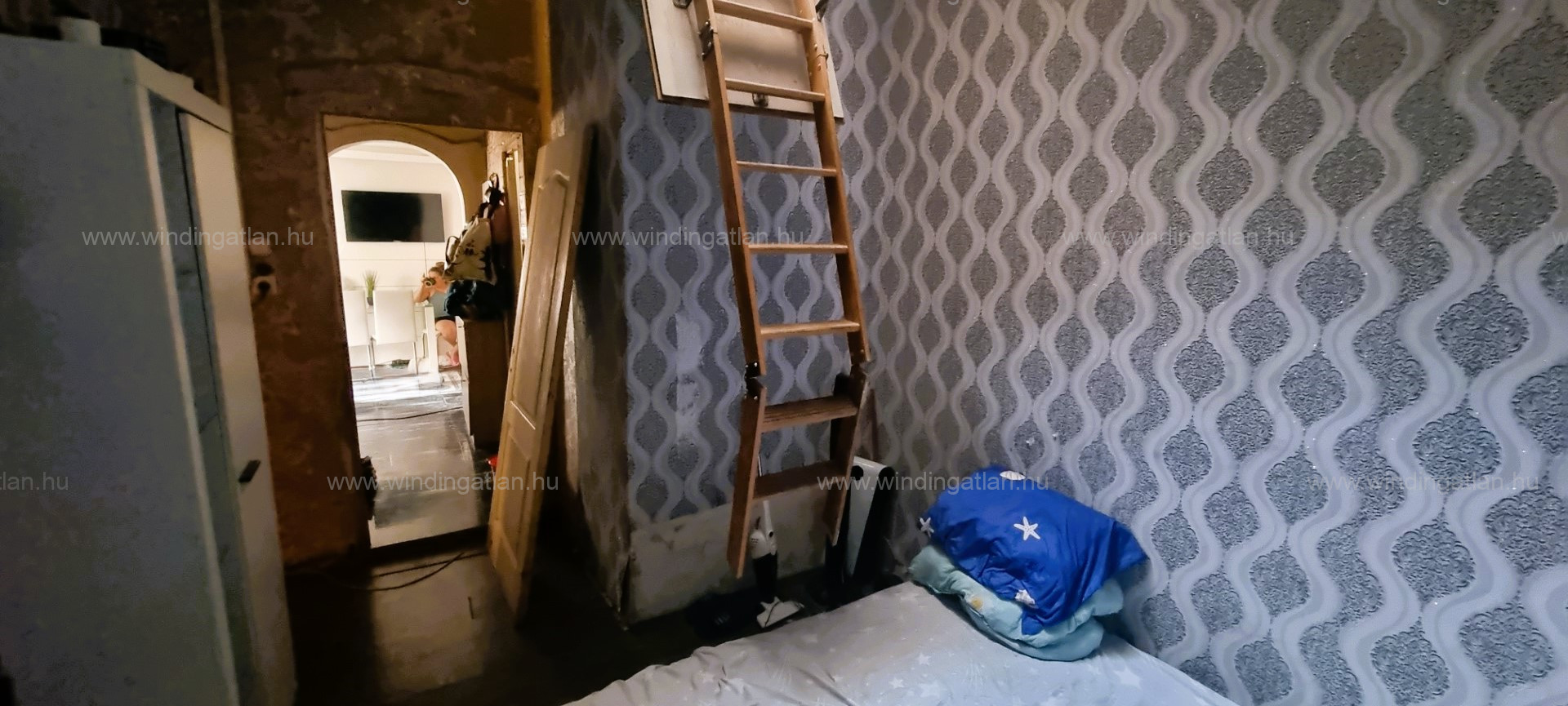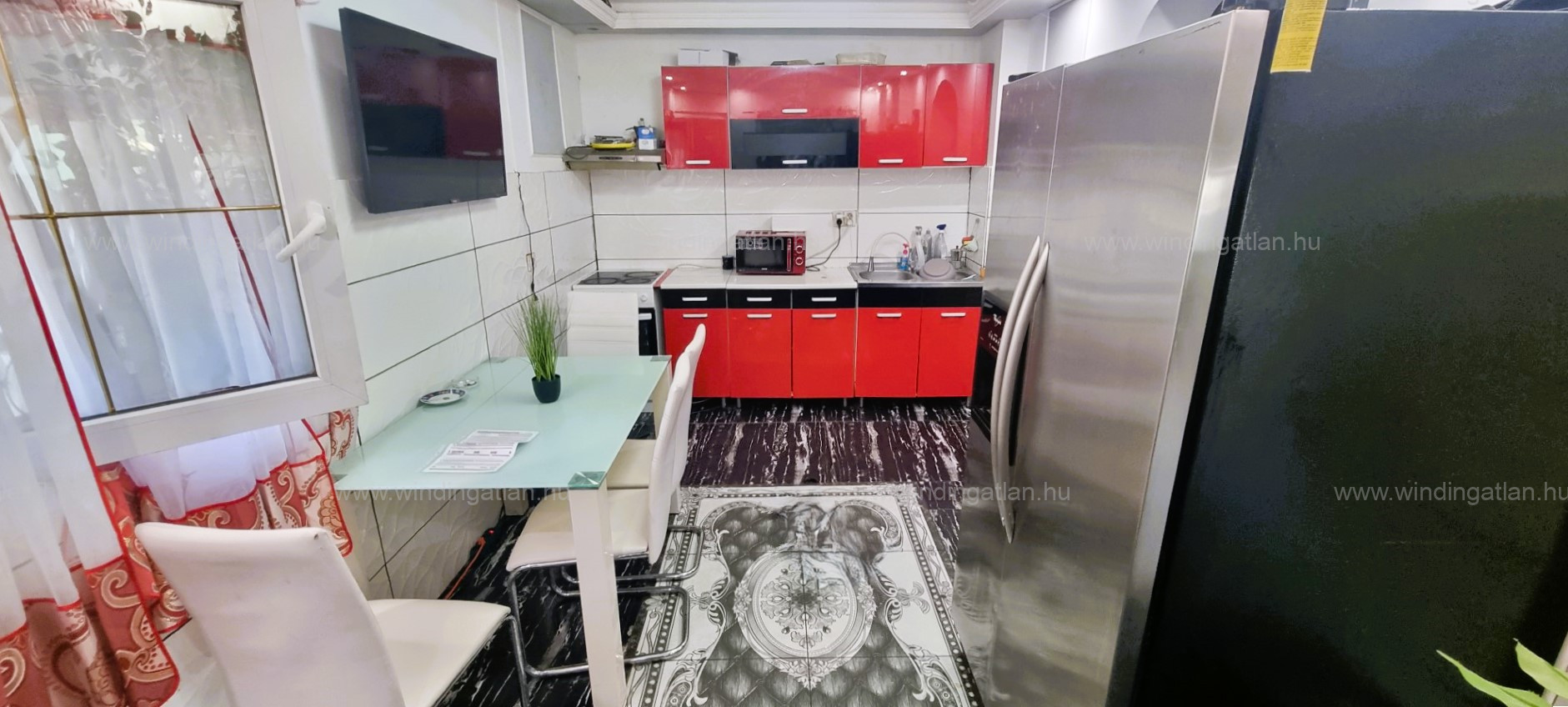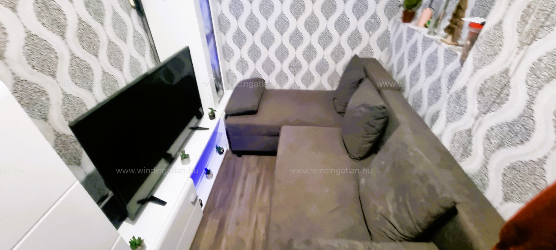 Az ingatlanban eredetileg egy 5,5 nm-es félszoba, zuhanyzós fürdőszoba, egy 13 nm-es étkezős konyha valamint egy 18 nm-es nappali lett kialakítva, melyet a tulajdonosok átalakítottak.
