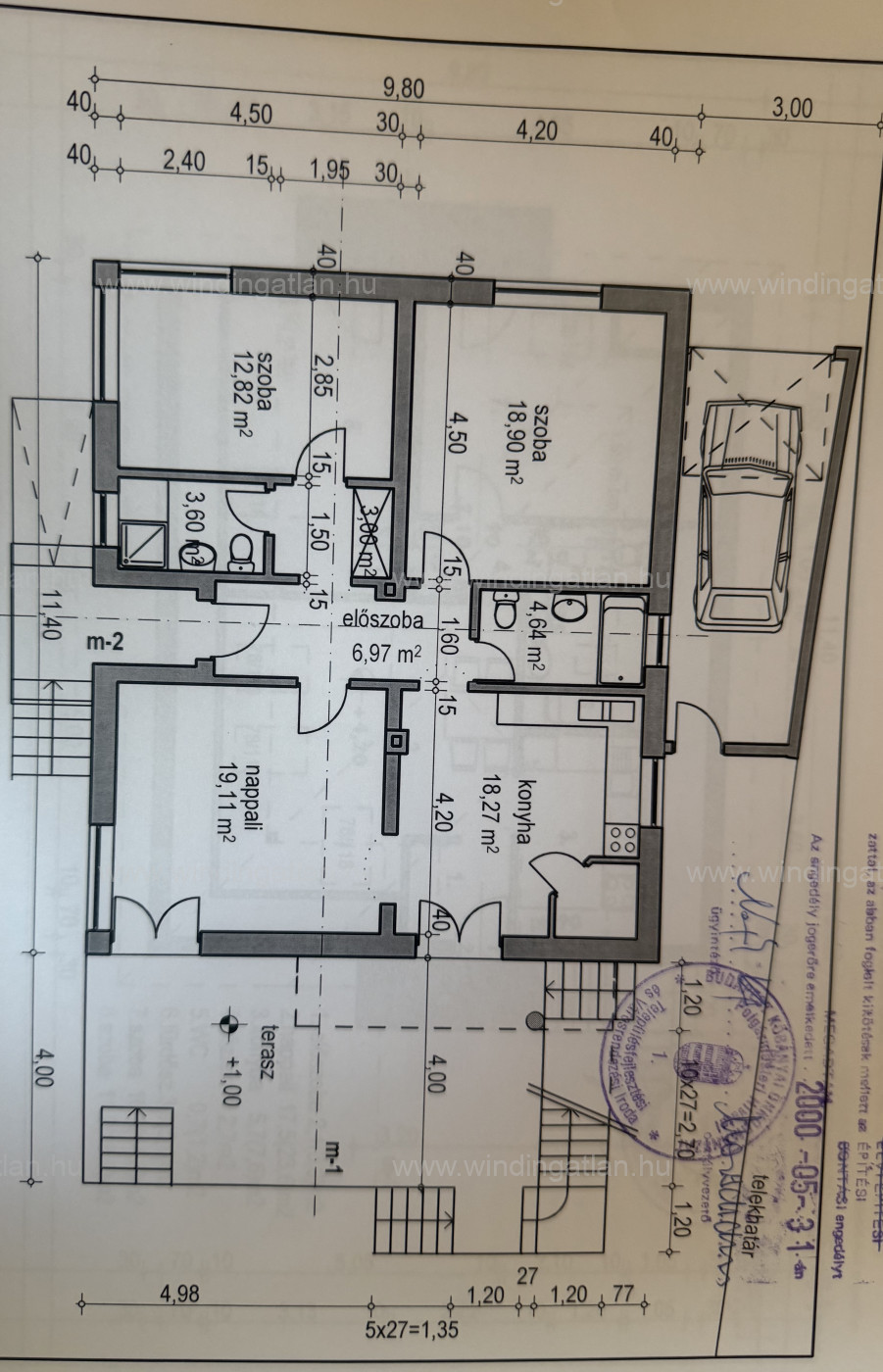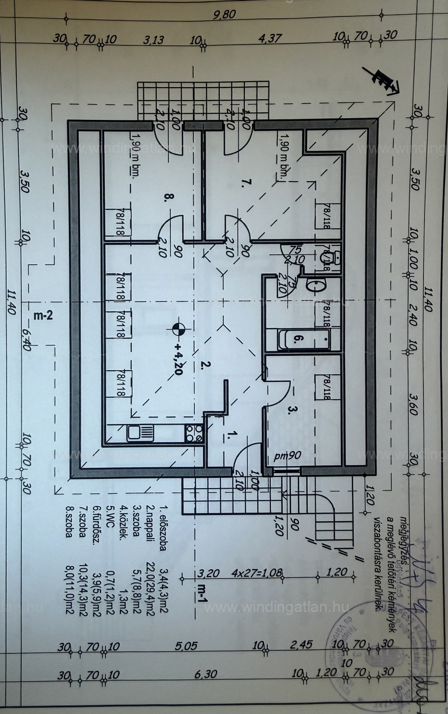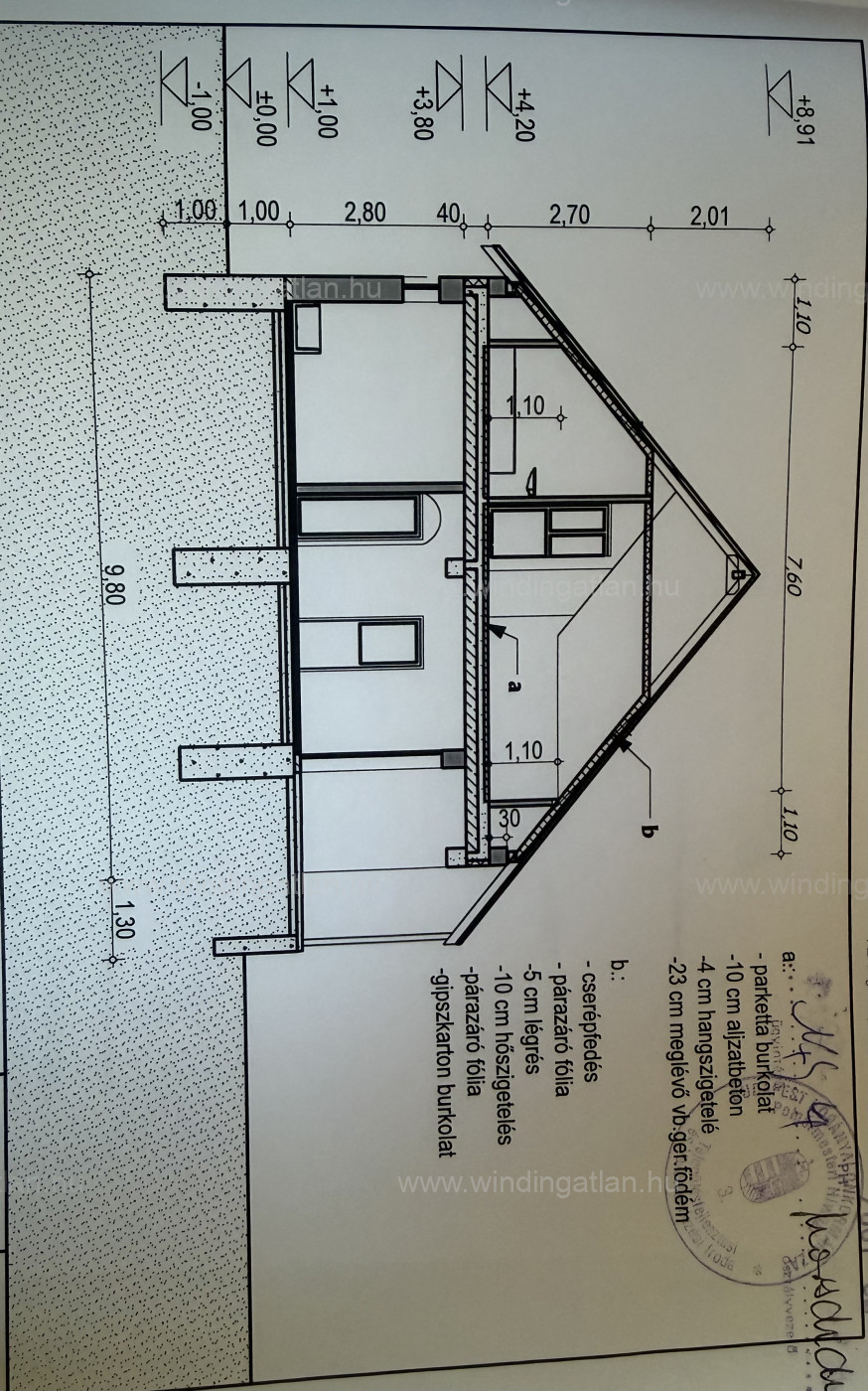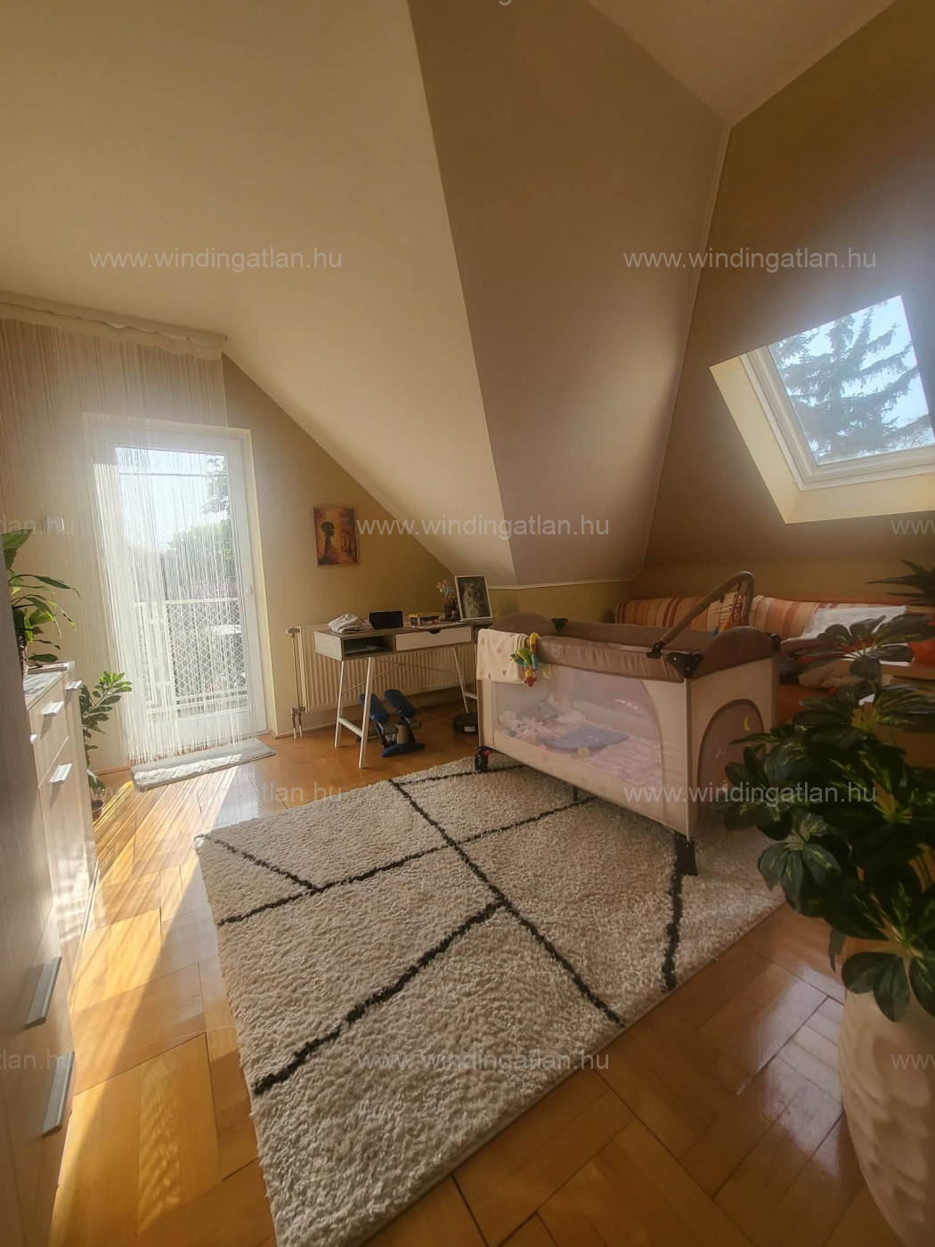 - Felső szint: ugyanekkora alapterület, ebből 60 m² hasznos
